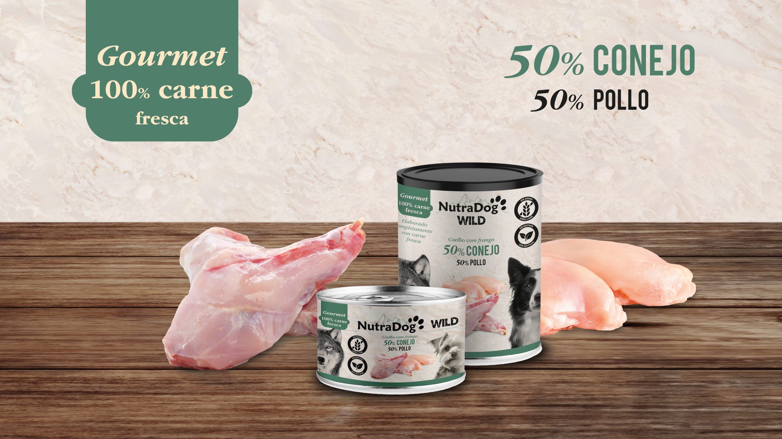 Ingredientes: Carne de conejo (50%), carne de pollo (50%).