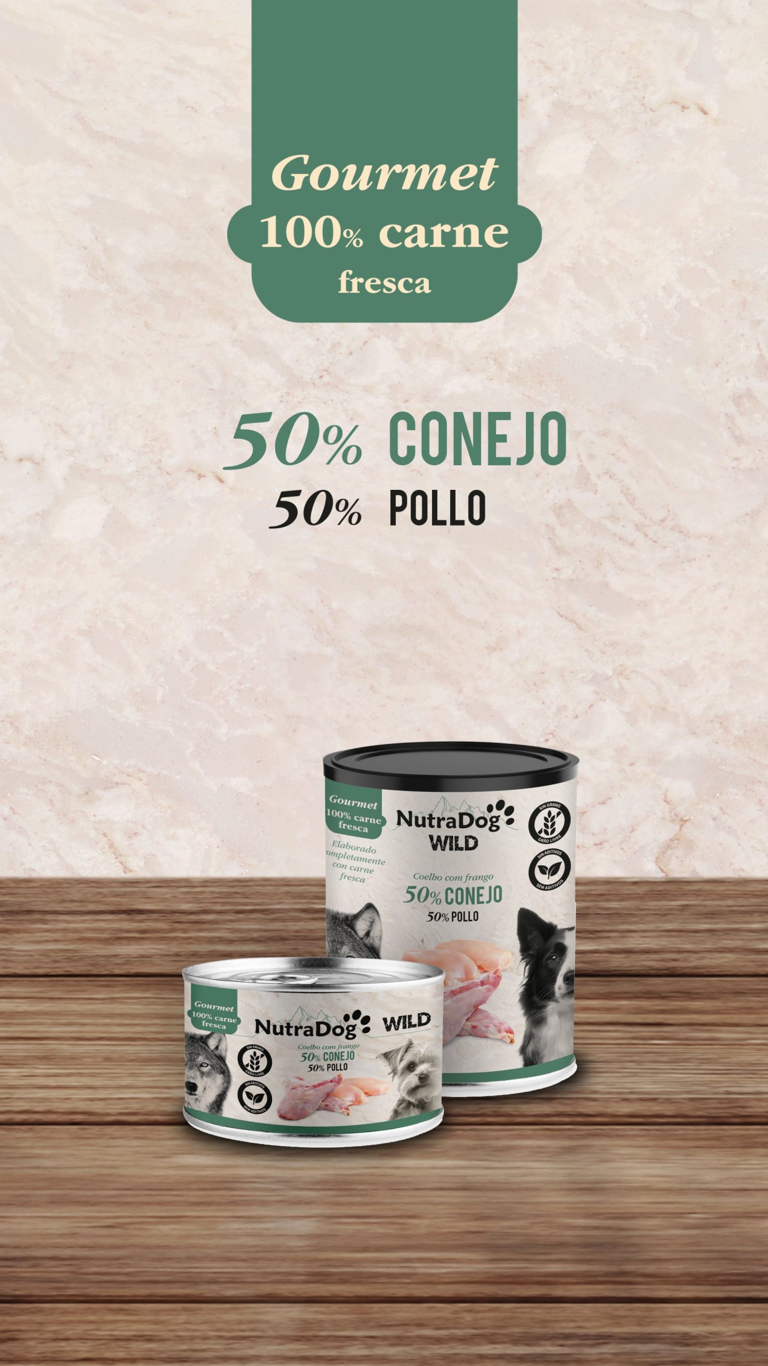NutraDog WILD húmedo Conejo y Pollo Gourmet ofrece una alternativa nutritiva y ligera, ideal como complemento de dieta para perros sibaritas que disfrutan de nuevos sabores y texturas.