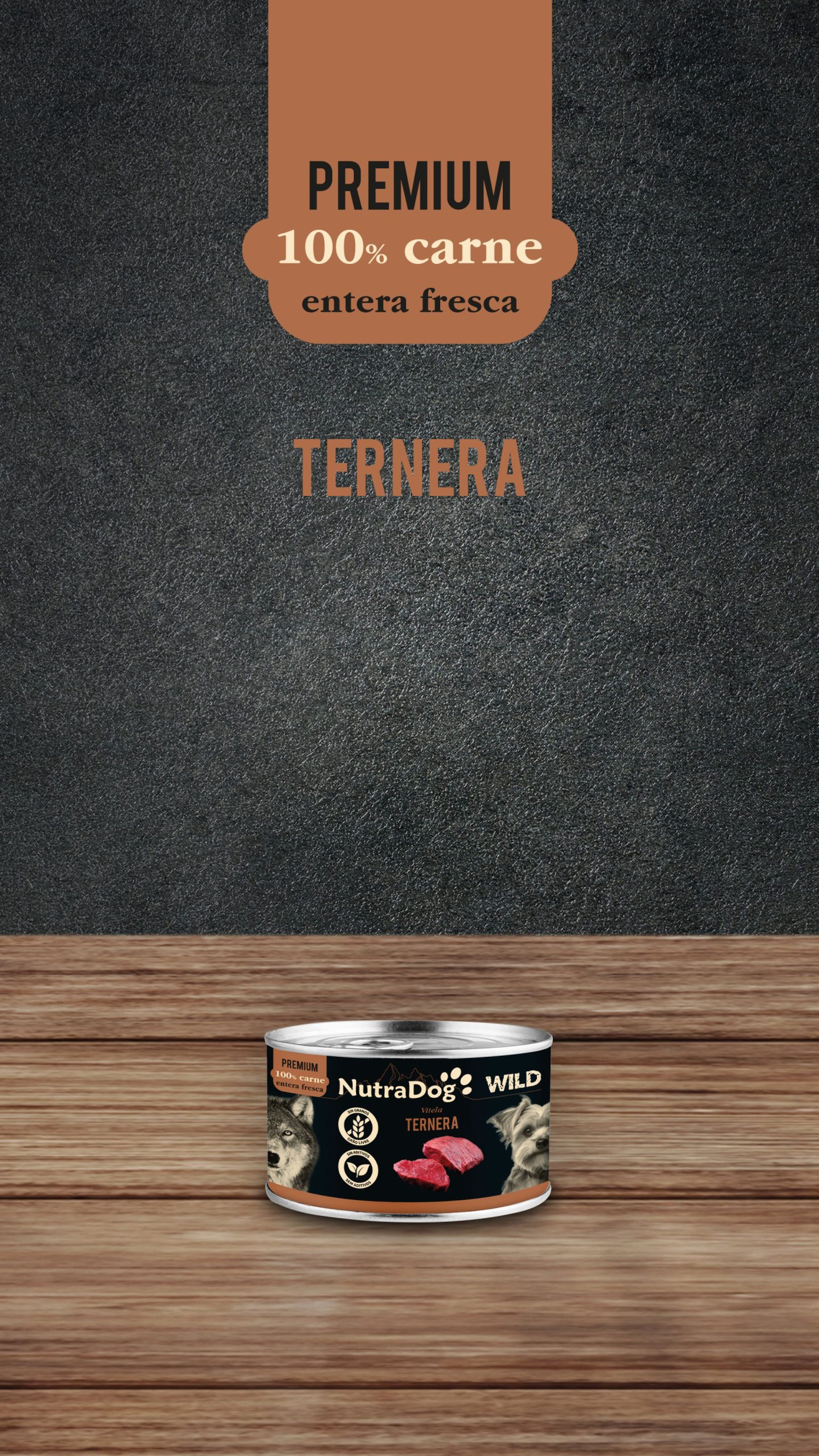 NutraDog WILD húmedo Ternera Premium es un exquisito alimento húmedo para perros de gran calidad, elaborado exclusivamente con carne de ternera 100% fresca y deshuesada. Este alimento premium utiliza trozos enteros de carne magra, cuidadosamente seleccionados, cortados y enlatados a mano, garantizando la máxima calidad, textura y un sabor auténtico.
